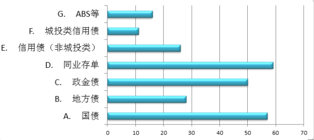 问题17:目前环境下,债券配置方面,更倾向于什么类型的债券?(多选题)