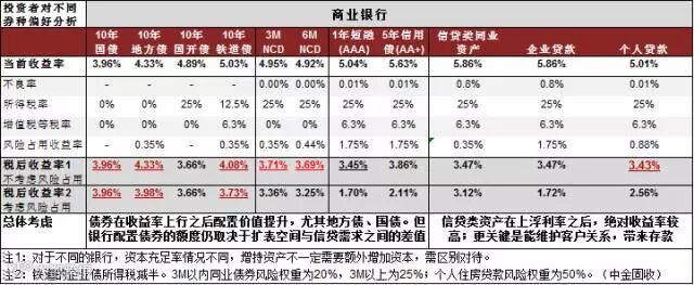 在目前收益率水平下,中小银行更倾向于同业存单、国债、政金债。其中存单绝对收益率高、流动性好,国债免税后实际收益率较高,政金债绝对收益率水平较高(详情见下图)。不过,从资产配置的角度,中小银行配置债券的空间仍取决于其扩表的空间、信贷需求的强弱以及广义流动性的情况。