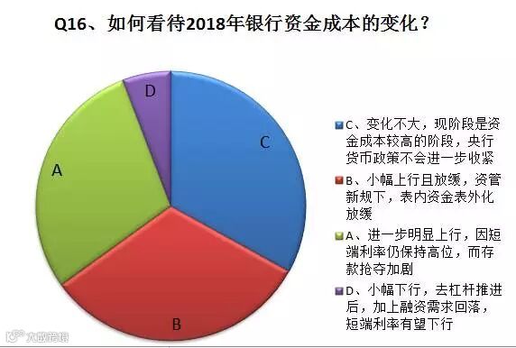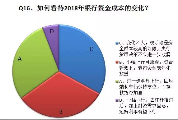 对2018年资金成本来看,大多数中小银行仍有担忧,认为资金成本仍将维持高位,或进一步上行。