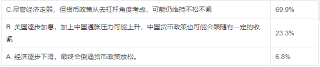 关于明年货币政策观点来看,大部分中小银行(70%)认为尽管经济可能走弱,但货币政策从去杠杆角度考虑问题,仍可能维持不松不紧。