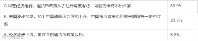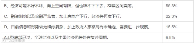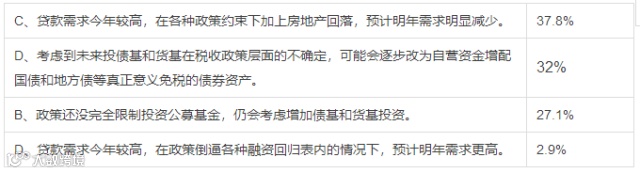 今年在基建和房地产支撑下,经济整体表现平稳,在对明年经济走势的判断上面,大部分中小银行(占比55%)认为经济可能不好不坏,向上空间有限,但也跌不下去,维持窄幅区间震荡。