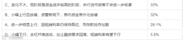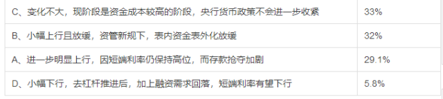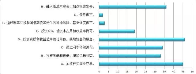 (4)今年最难熬和最开心的时刻:好几个调查反馈今年“天天都难熬,天天不开心”,可见不开心的不是一个人,今年的债市大家都很不开心,都比较煎熬。煎熬来自于监管趋严、行内考核压力、负债成本高、资金面紧借钱难、资产收益上不去而债券收益率上行过快但却没有有效的对冲工具,等等。而开心也是苦中作乐,偶尔时点资金宽松好于预期、没有上船等。