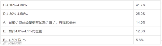 关于10年期国债收益率上行至哪个水平,中小银行会增大配置力度,中小银行看法较为分散。