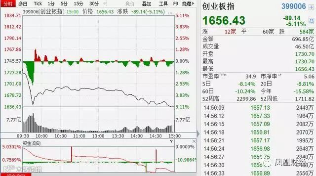 截止收盘,沪指收报3176.46点,跌0.13%,成交额2747亿。深成指收报10055.80点,跌3.57%,成交额2950亿。创业板收报1656.43点,跌5.11%,创去年12月12日来最大跌幅,成交额697亿。