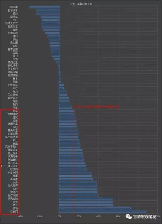 下图是我们选取了A股64个细分子行业,对比过去三年(2014-2016)上市公司的资本开支平均增速。