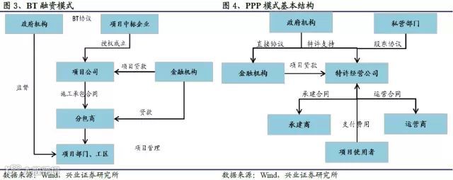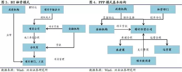 从国际经验和长远发展来看,随着经济发展、法律法规的不断健全,权责分配、收入产出、监督监管、风险控制等方面不断完善,基建项目支付模式和管理主体将发生变化,BT 项目将会逐渐过渡到更长期的PPP 模式,即基建项目的建设将从政府出资,企业施工模式转变为企业出资,企业施工,政府回购的PPP 模式。对于我国来说,在银行贷款、BT 等多种融资手段受到严格限制,同时政府转变职能、全面深化改革的时代背景下,吸引社会资本,进行融资手段创新和转型是必由之路。PPP 模式在多方面契合了这一转变的要求,是未来国内基建融资大势所趋。