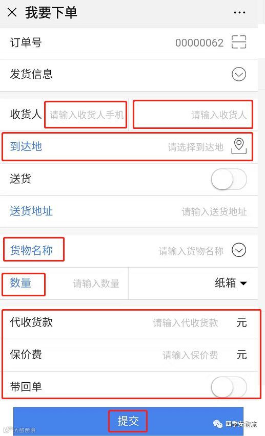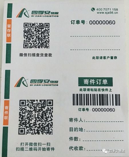 最后请在寄件订单签上姓名,并且填写目的地和发货日期,将其粘贴在货物包装最小面,交于四季安物流的物流专员,打印相应的四季安面单,即可完成寄件。