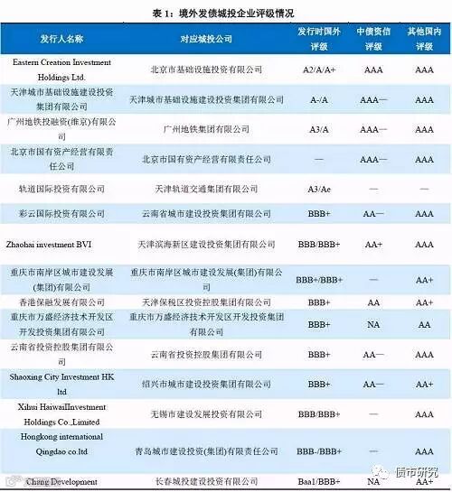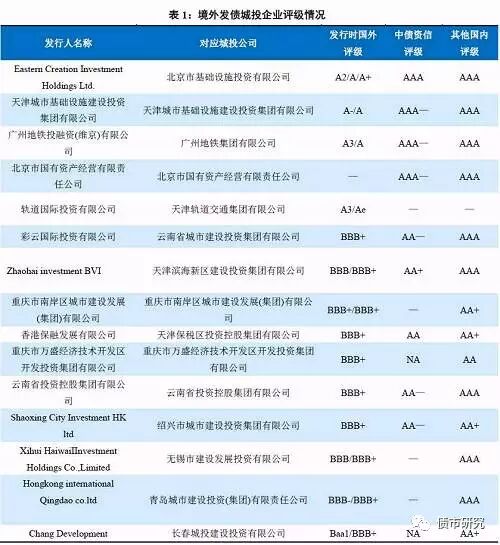(一)城投企业国内外评级差距大,国内评级存在较大虚高