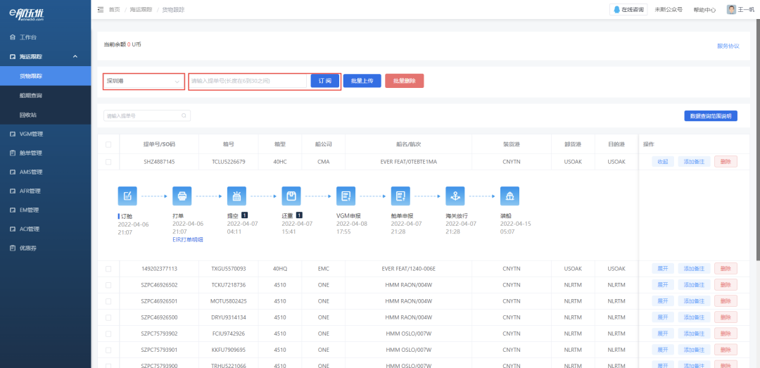 使用非常简单,你只需登录e航无忧官网,选择【货物跟踪】,输入提单号后点击订阅即可。