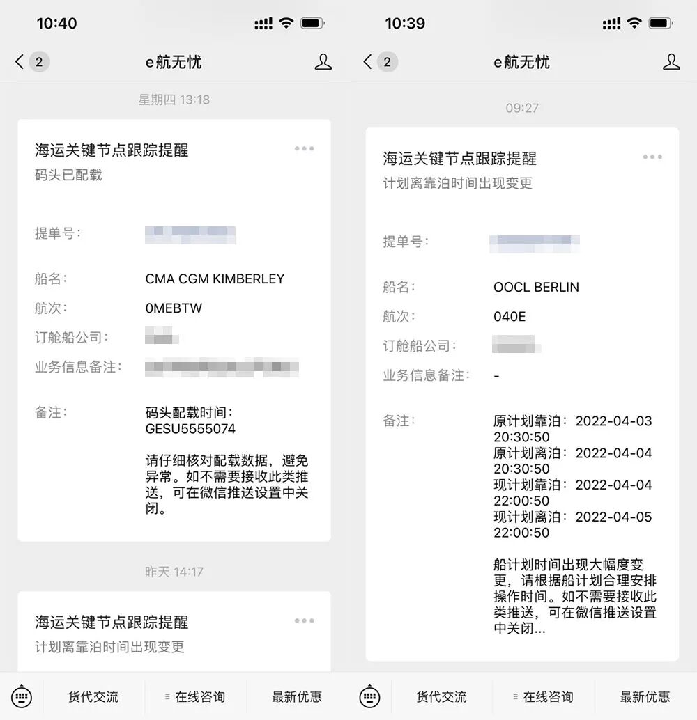 相关货物跟踪的信息将会通过e航无忧微信公众号推送到你的手机上。