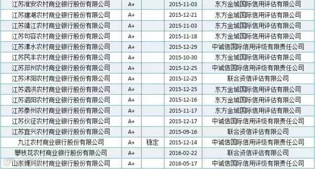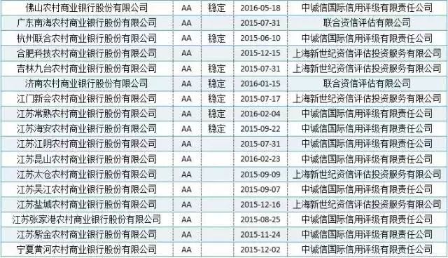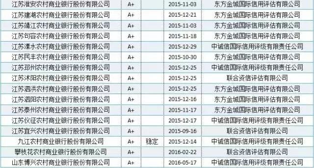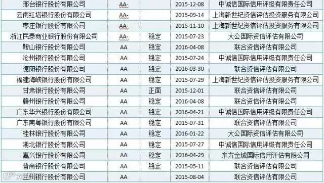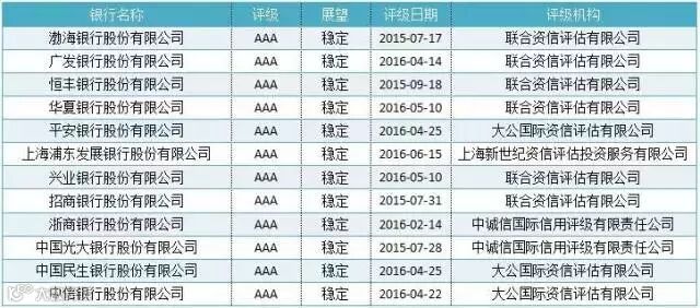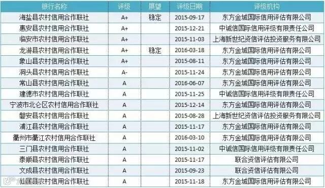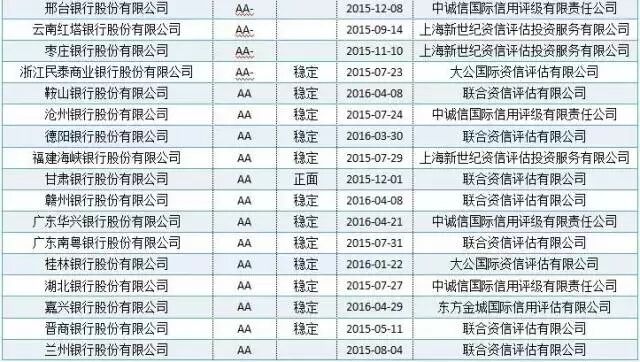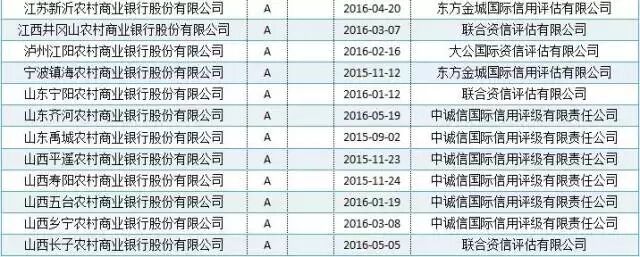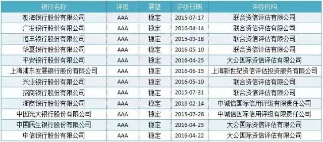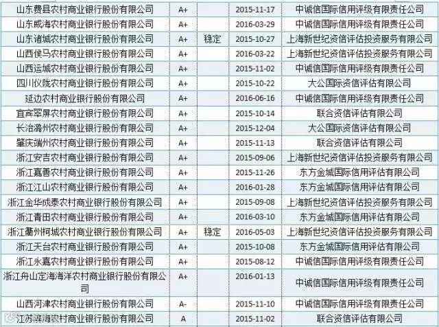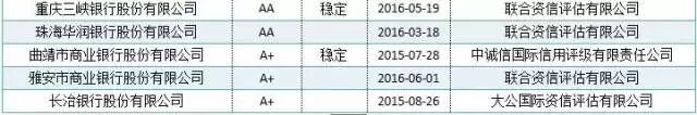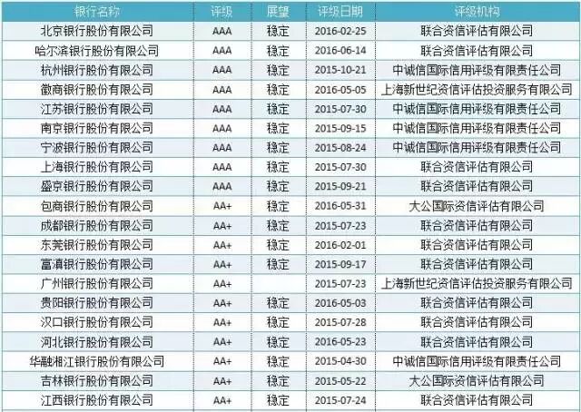 本表内的评级结果均为银行主体评级,各银行的评级结果均取2015年后最新公布数据,同年内被多次评级的取最新结果;