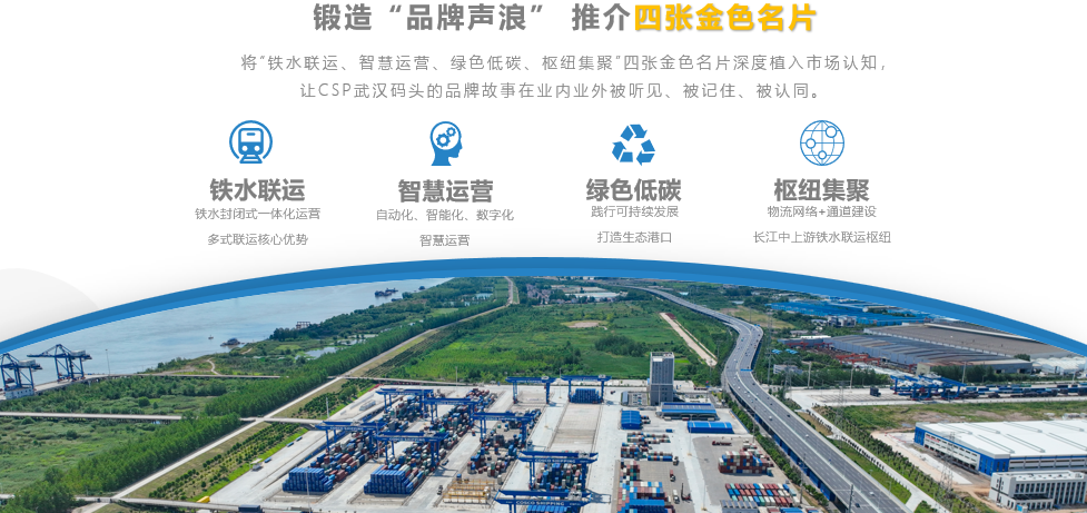 拥有“铁水联运、智慧运营、绿色低碳、枢纽集聚”四张金色名片的CSP武汉码头,紧抓重大生产经营节点,策划品牌,放大品牌声量;追赶行业标杆,树立行业典范;跃升叙事维度,展现中国智慧港口;服务提升中润物无声,将四张金色名片深度植入市场认知。