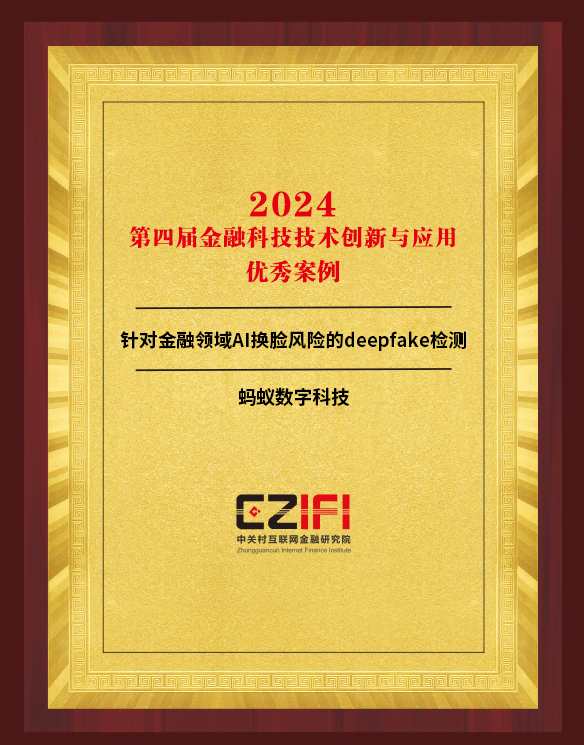 很荣幸地报告大家,最近,在中关村论坛系列活动第12届数字金融与科技金融大会上,我们的Deepfake 检测方案荣获了大会“金融科技技术创新与应用案例”。