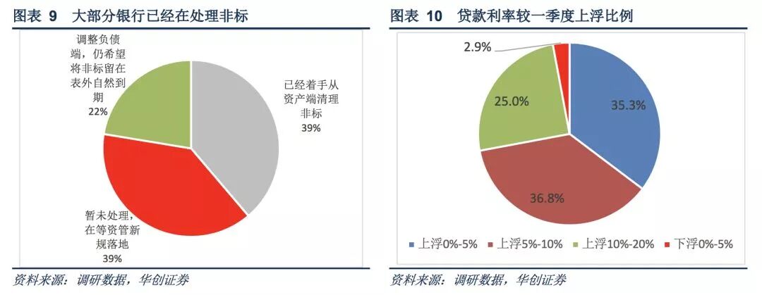 61%的信贷官表示已经在着手处置非标。在非标完全回表不可能的情况下,银行正稳步推进非标清理工作,相对容易清理的房地产类非标处置力度较大。政府平台非标清理工作面临较大困难,当前处置力度还较小。某城商行信贷官就表示对平台非标的处置会较谨慎,因为这关系到银行的存款流失问题,还在等待最终资管新规落地。