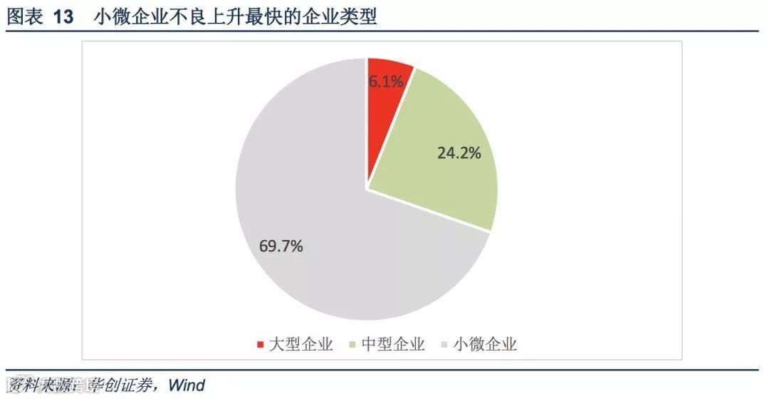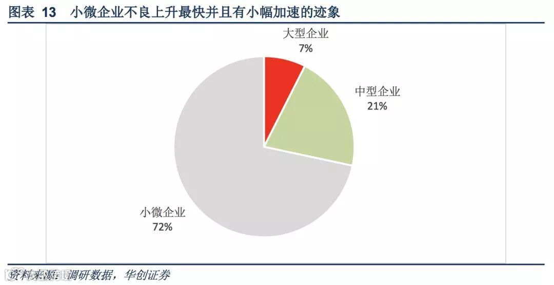 调查中大部分信贷官均认同不良率不存在上行风险,认为不良较2017年4季度基本不变或减少的信贷官占到80%。分银行类型来看,五大行不良改善最好,有75%的信贷官认为不良将继续减少,股份行中有42%的信贷官这么认为,而农商行中仅有14%的信贷官认为不良会减少。大部分(70%)的信贷官认为小微企业不良上升最快。