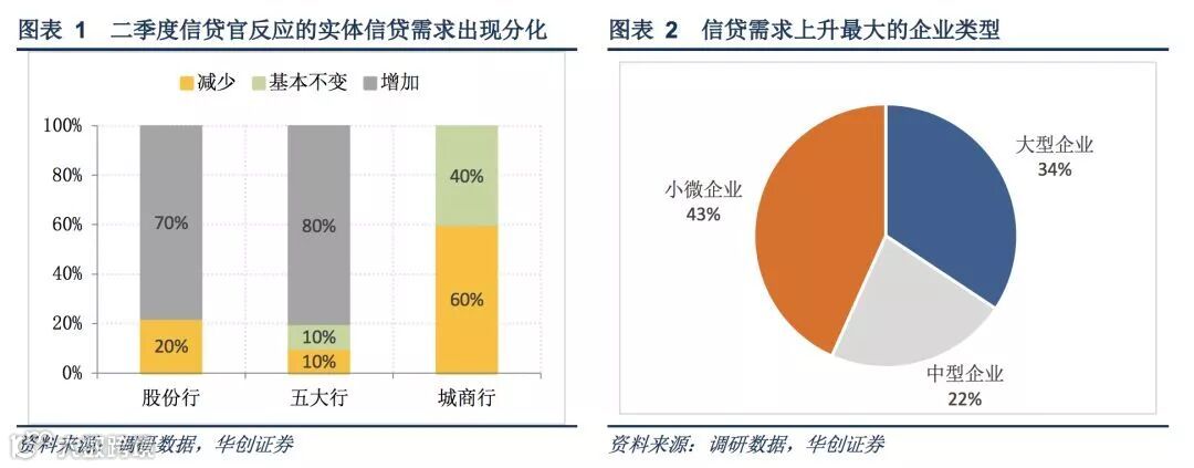 1、2018年2季度信贷官反映的实体信贷需求出现分化