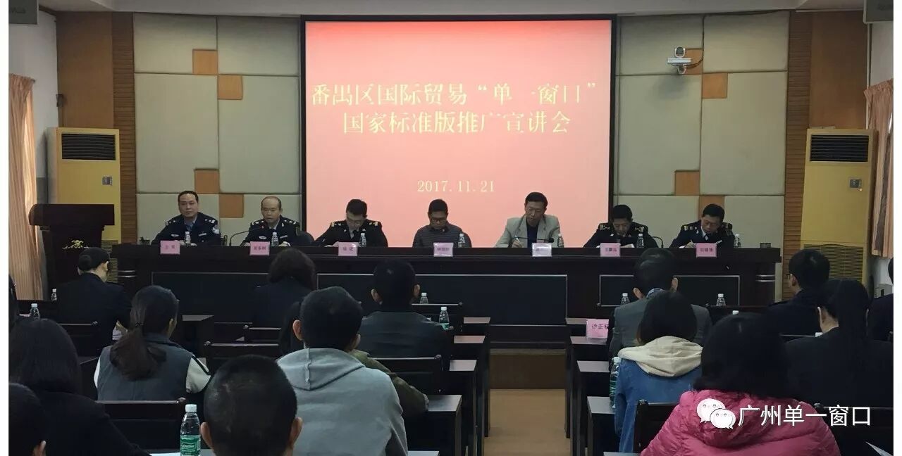 推广会上,市口岸办就对接“单一窗口”标准版的重大意义、政策要求及任务目标进行宣讲;黄埔、花都、番禺区口岸办及广州空港经济区管委会口岸办做动员讲话,引导企业主动对接使用“单一窗口”标准版;驻地海关、检验检疫部门表示积极支持推动“单一窗口”标准版的应用。
