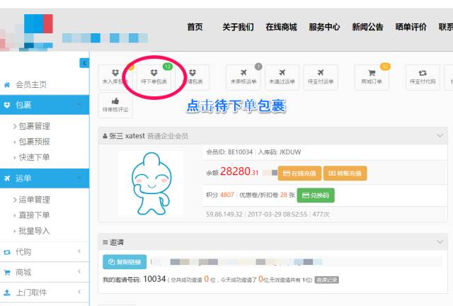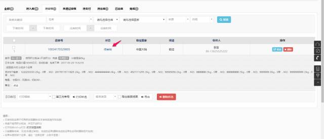 12,回到主页,包裹状态显示待审核,即等待审核包装