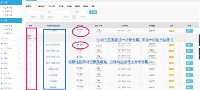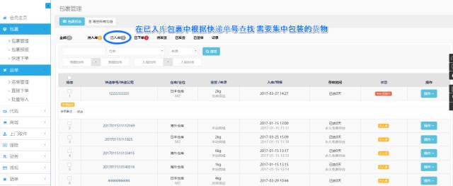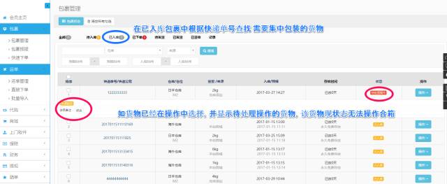 2,根据快递单号确认需要集中包装的包裹是否已经入库