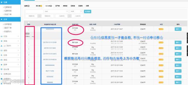 5,货物状态均为已入库情况下,需要核实仓库/仓位是否统一,仓库不统一需要申请移仓后才能进行操作(目前系统只支持日本仓库)
