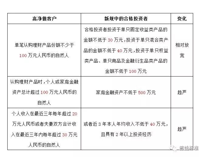 在新规出台后,目前银行高净值客户的标准或可能出现改变,整体条件将趋严格。