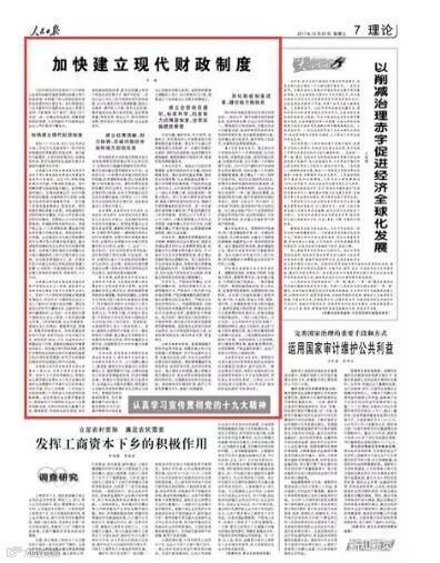 人民日报今天刊发财政部长肖捷的文章:对个人住房按评估值征房地产税。内容本身不是新闻,肖捷这篇文章一个月前就收录在十九大精神辅导报告读本里了。但时点有恰巧,选在中央经济工作会议闭幕日,看看会后通知吧。政治比投资更讲择时。