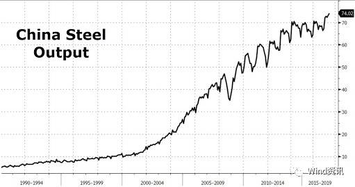 统计局数据显示,中国的钢产量7月再创新高至7403万吨,同比上升10%,并高于前期6月7323万吨水平。