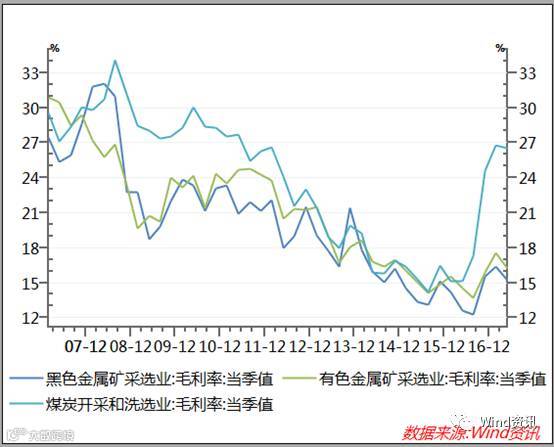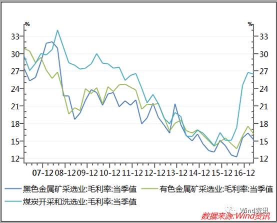 Wind数据显示,以钢铁、煤炭、有色金属为代表的上游企业盈利能力明显改善。