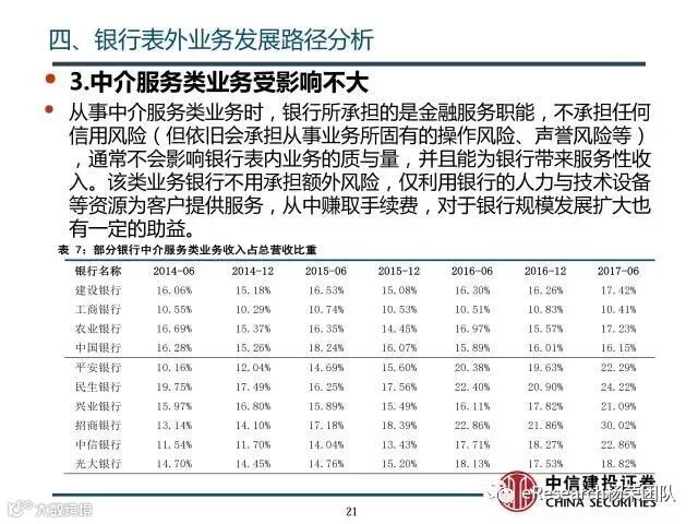 ③中介服务类业务受监管影响不大,保持相对稳定,其业务规模会不断扩大;