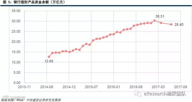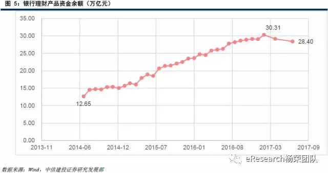除此之外,央行还将表外理财纳入MPA考核。MPA考核包含许多指标,是衡量银行成绩的一个重要指标体系。“广义信贷同比增速”是其中一个重要指标,将银行表外理财纳入广义信贷范围,意味着表内表外共用一个广义信贷额度,银行考核压力加大。根据MPA考核规定,银行广义信贷增速与目标M2的偏离不得超过22-25个百分点,如果按照17年M2为13%的话,意味着广义信贷同比不超过35-38%。过去理财产品不在广义信贷范围中时,银行通过理财产品将资产往表外转移。而新规的发布,意味着中小银行表外理财迅猛扩张势头遭遇逆转,广义信贷额度更加紧张。事实上,2014年和2015年银行理财产品余额增速分别约为54.45%与72.75%,大大超出了MPA的监管红线,而2016年上半年同比增速仍达到46.6%,尤其城商行和农村金融机构扩张迅猛,城商行的理财资产相比年初已扩张58%。2016全年增速32.59%,可想而知在政策刚颁布的年末,表外理财、委托投资等表外业务面临大幅压缩的压力,对银行造成了巨大的冲击。