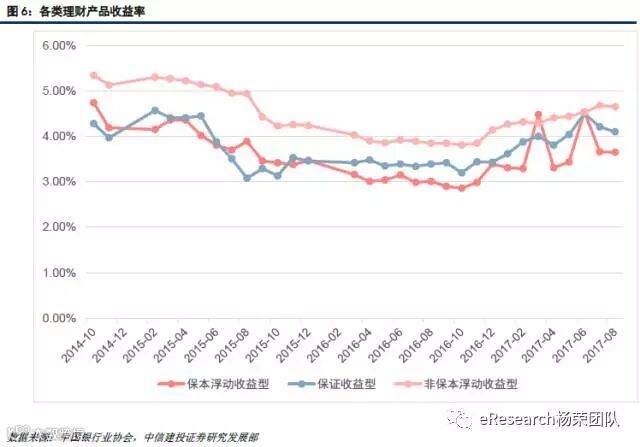 12月,央行将表外理财纳入MPA考核。随着表外理财纳入广义信贷计算,传统高收益的非标类产品扩张将受到约束,金融机构或对表外理财投资产品结构进行调整,理财产品整体收益率将面临下行压力。这也是央行准确衡量银行风险,给予必要的引导和提示的重要一步。