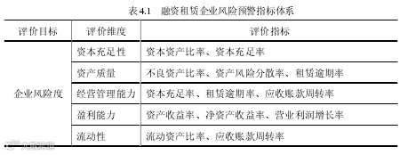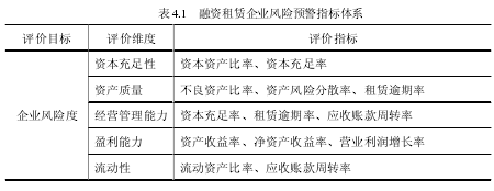 根据上文对融资租赁风险类型、风险形成原因的分析,并通过对风险预警指标的选择,提炼出融资租赁企业风险预警指标体系: