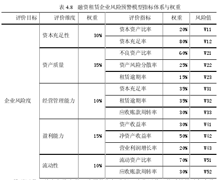 根据上文对融资租赁企业风险指标选择与指标赋权,可构建融资租赁企业风险预警模型: