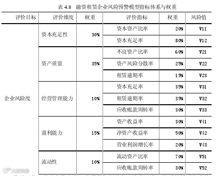 通过梳理我国融资租赁企业的七大风险类别,剖析我国融资租赁企业风险的两大方面形成原因,在充分分析融资租赁企业风险形成机理的基础上,本文将风险预警范围确定在五个维度,分别从资本充足性、资产质量、管理能力、盈利能力和资产流动性等五个维度设计风险计量、评价与预警指标。