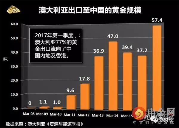 而澳大利亚最新的数据显示,今年第一季度该国出口至中国的黄金同比增长逾50%,在所有出口目的地中占比77%。