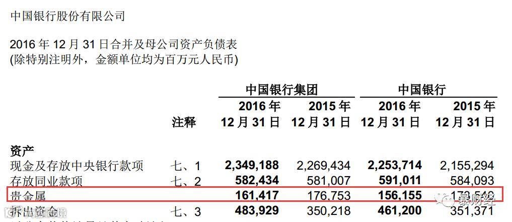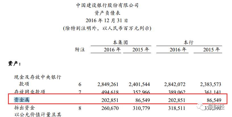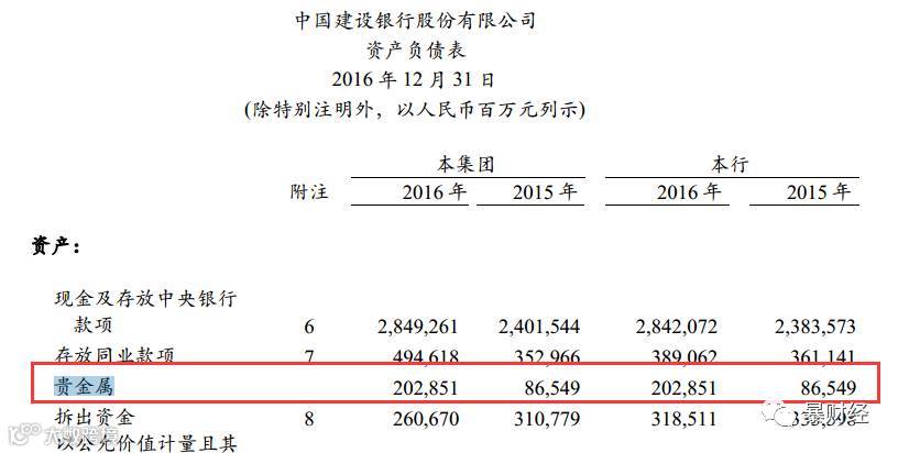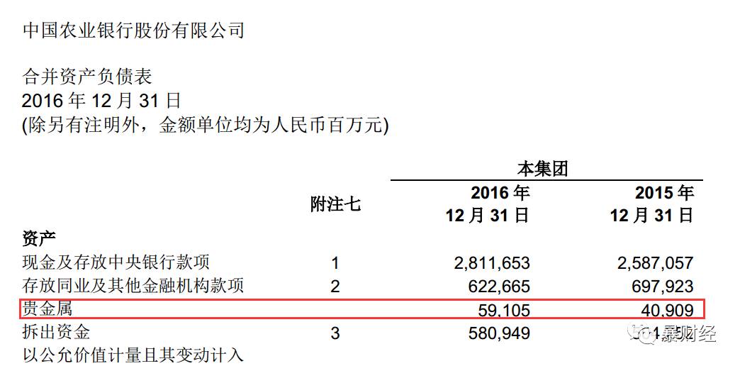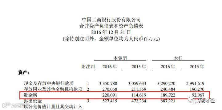 根据2016年年报,四大行持有的贵金属规模分别如下: