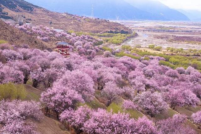 三月的西藏,寒风肆意袭扰,大部分地方还冬眠未醒,而林芝那三面环山的“桃花沟”却已是粉红的海洋。