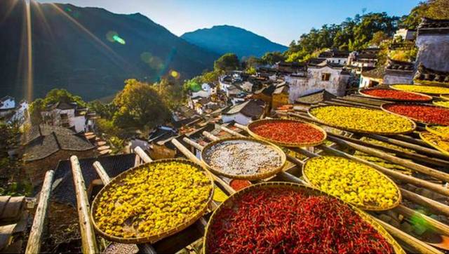 被誉为“最美中国符号”的篁岭晒秋是一种典型的农俗现象,具有极强的地域特色。