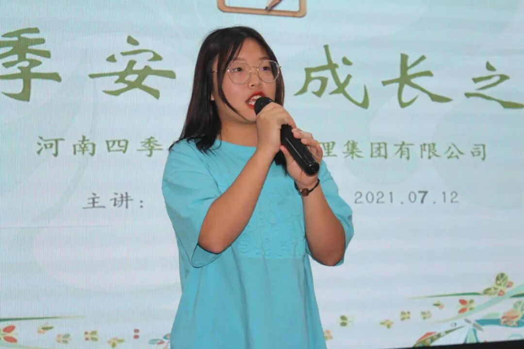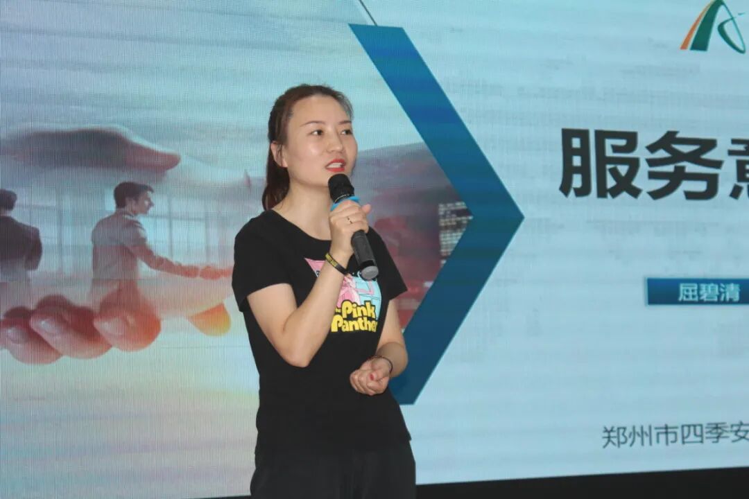 本次培训的“第一课”在河南公司人力高级经理刘欣的《企业发展历程》讲解中正式拉开帷幕。她结合亲身经历娓娓道来,饱含深情地讲述了四季安的发展历程、综合概况、发展思路以及四季安人在不断的奋斗中所迸发出的活力与自信。