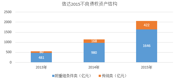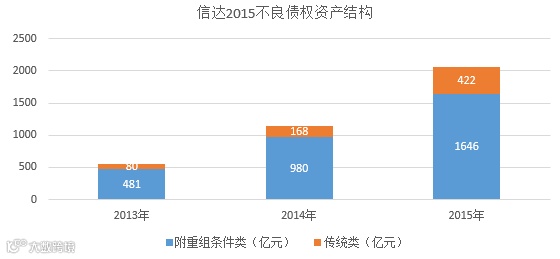 资产结构:附重组条件类不良资产共1646亿元,占比80%,内部收益率12%,主要来源于非金融机构;传统类不良422亿元,占比20%,内部收益率18%,主要来源于银行。