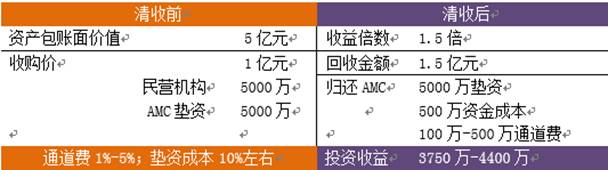 江浙一带的通行做法是:买包后,民间机构和AMC签订合约,债权暂时不做变更,仍以资产管理公司的名义清收,清收完成后和资产管理公司分成。