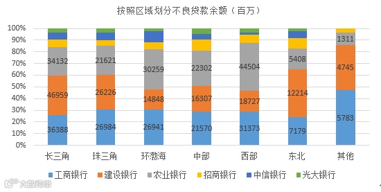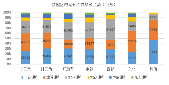区域上集中在长三角、珠三角和环渤海地区,浙江省不良贷款在长三角位居首位。