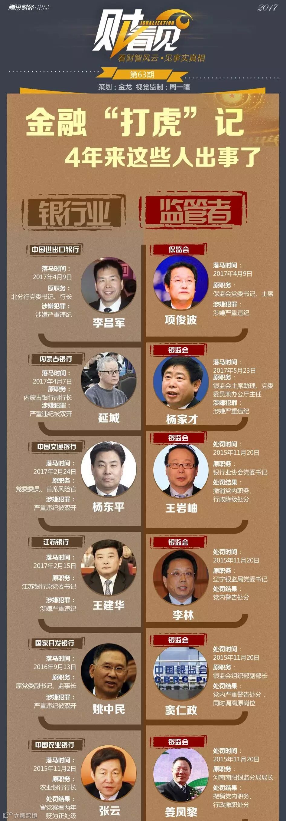 2、拿下那些已经腐化、被市场“俘获”的金融大老虎,绝对也是必要的。这对于解决金融风险,响应最高层敲打金融安全警钟,推进金融监管收紧,很有作用。只有如此,才有利于打击金融违法,及时补上监管漏洞。