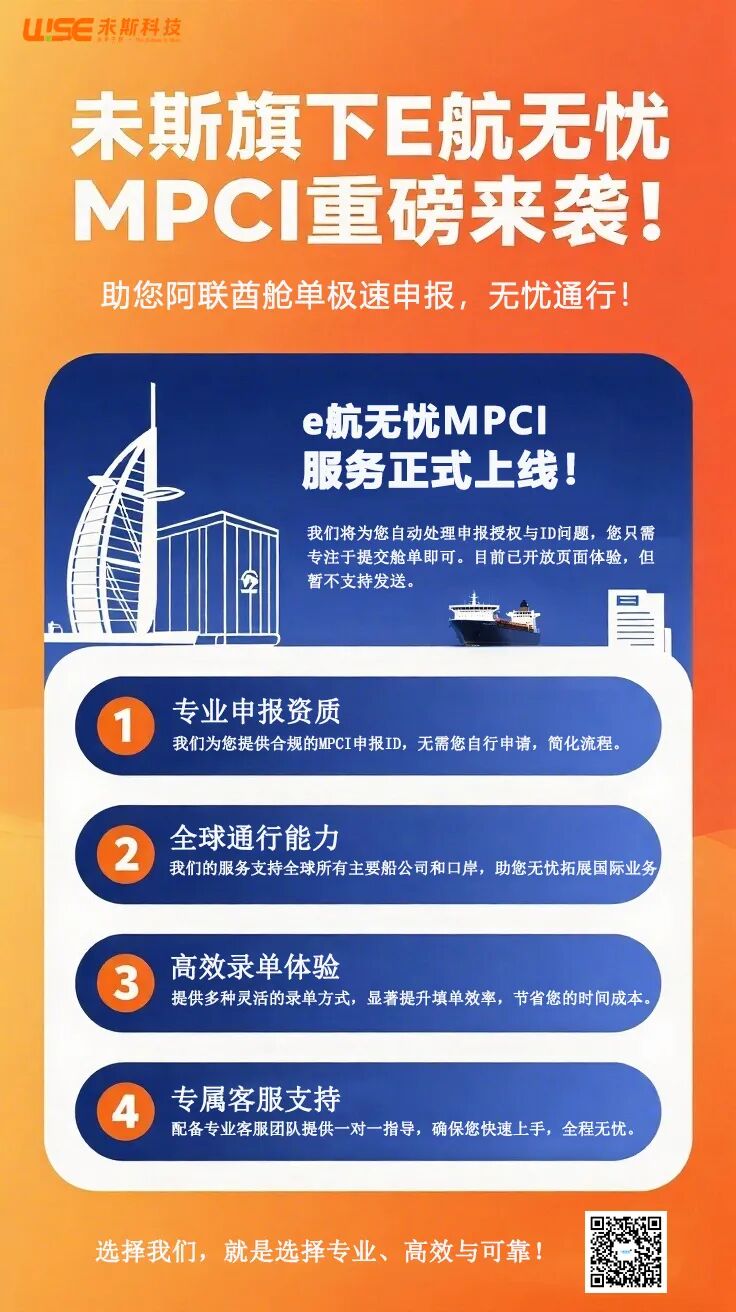 未斯旗下E航无忧MPCI重磅来袭!助您阿联酋舱单极速申报,无忧通行!