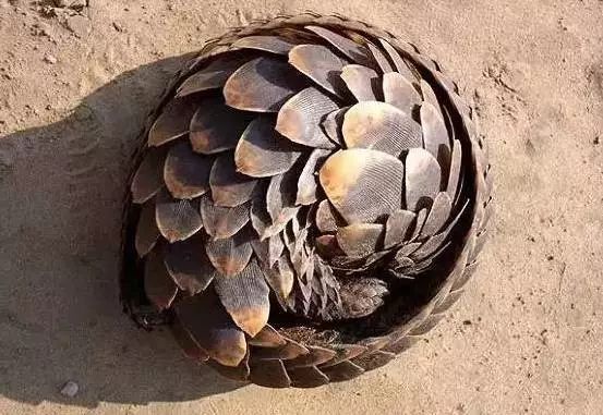 穿山甲被捕获以后,出于恐惧或是自卫的本能,总是把躯体紧紧蜷缩着,卷成一圈。
