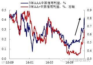 相比4月份,由于这次调整的起因来自于负债端,因此信用债的调整幅度大部分不如4月份惨烈,但这一次市场的调整,收益率已经超过7月份高点,几乎使得下半年建仓的所有委外账户都出现了亏损,而且这一次调整时,资金面非常紧张,即使是现在,债券的套息空间仍然很窄,杠杆操作的难度显著上升。今年下半年,银行主动扩张理财和委外的动力很强,而在面临亏损之后,到明年1季度重新评估委外,降低扩张速度,是比较确定的事情。