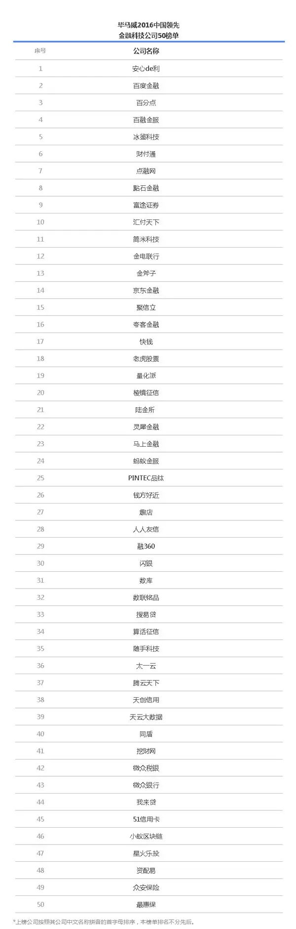 毕马威中国于今天首次发布了中国领先金融科技50榜单及报告(后附报告链接),报告中阐述了毕马威对金融科技行业的理解,金融科技应用趋势的观察,并提供了上榜企业的简介。