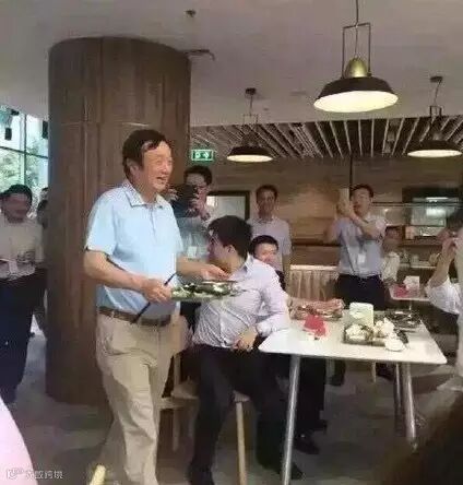 货真价实的食堂,看,大家都在刷任正非排队打饭的照片——