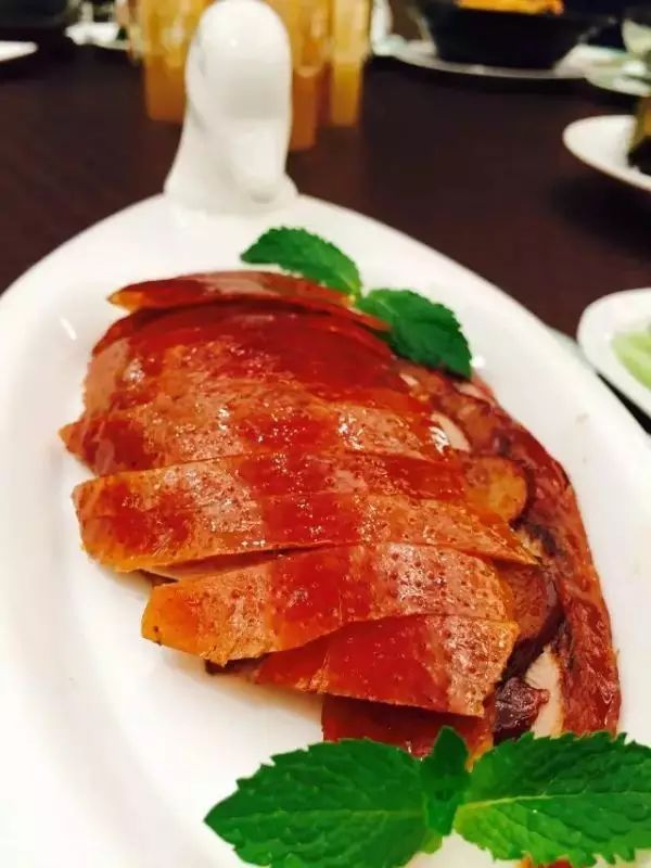 据师傅说,片烤鸭的刀法叫“立体式刀法”,酥皮下还连着一层薄薄的油脂。尤其是最鲜嫩美味的鸭胸脯肉,夹上一片,蘸上些砂糖,不禁垂涎三尺。