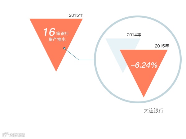2015年榜单中,有16家银行资产缩水,其中多以外资行为主,2015年以来,多家外资行盈利跳水,纷纷做出了“减仓”中国的举动。在城商行净利增速领跑银行业的趋势下,大连银行却连续两年资产下滑,2015年资产再次缩水6.24%。